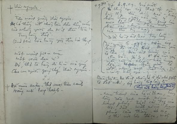 Đặc biệt, trong sổ còn ghi lại những dòng cảm xúc chân thành khi Bác Hồ qua đời: “9 giờ 47 phút ngày 3/9/1969, Bác mất. Chúng con xếp thành hàng ngũ trùng điệp đến viếng Bác, mấy hôm nay ngày nào cũng có mưa lớn… Từ ngày 6 đến 9/9/1969, nhân dân xếp hàng đi viếng Bác… dưới ảnh hưởng của cơn bão số 3, ở Hà Nội ngày nào cũng có những trận mưa lớn, hàng người bị ướt nhưng vẫn trật tự, giữ đúng hàng ngũ. Quảng trường Ba Đình, những lá cờ đỏ như giọt lệ của đất nước…” Những dòng chữ ấy không chỉ là ghi chép, mà còn là chứng nhân cảm xúc của một người lính, người nghệ sĩ trước nỗi mất mát lớn lao của dân tộc.