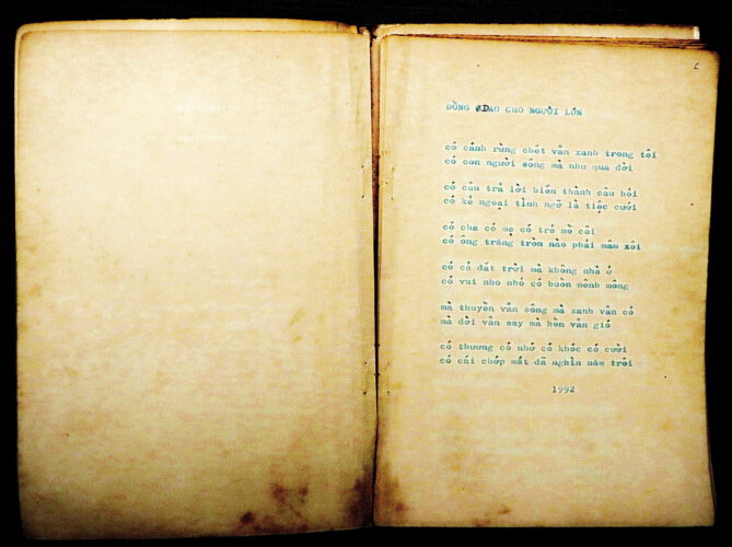 Hiện tại, trong không gian trưng bày về nhà thơ Nguyễn Trọng Tạo tại Bảo tàng Văn học Việt Nam, khách tham quan có thể trực tiếp thấy được bản thảo tác phẩm “Đồng dao cho người lớn” được nhà thơ viết bằng tay trưng bày tại đây.