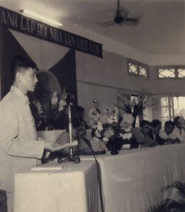 Nhà thơ Xuân Sanh phát biểu tại Lễ thành lập Hội Nhà văn Việt Nam