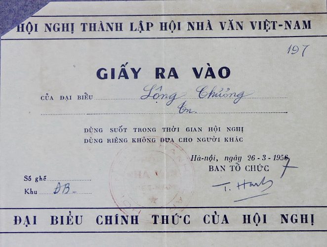“Giấy ra vào” hội nghị thành lập Hội nhà văn Việt Nam đang lưu giữ...