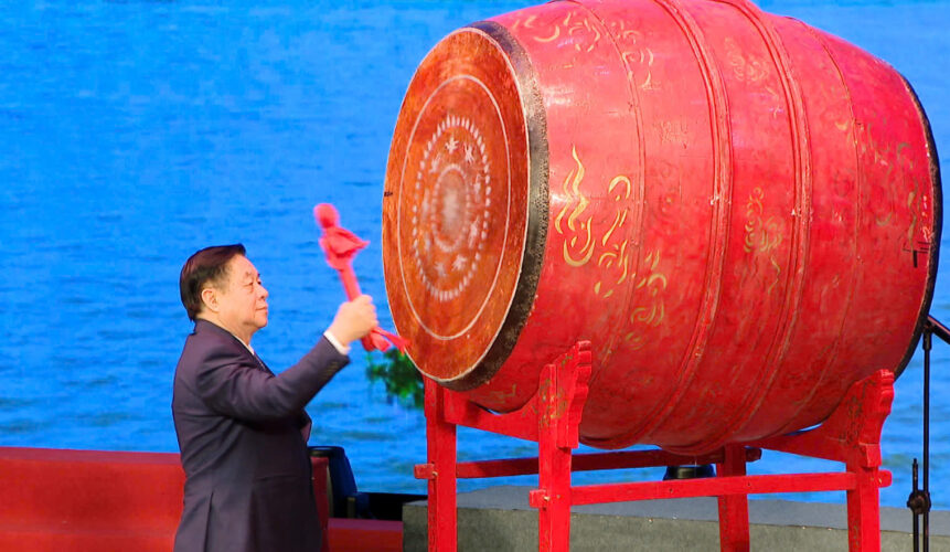 Đồng chí Nguyễn Trọng Nghĩa, Ủy viên Bộ Chính trị, Bí thư Trung ương Đảng, Trưởng Ban Tuyên giáo và Dân vận Trung ương đã đánh trống khai mạc Ngày Thơ Việt Nam lần thứ 23.
