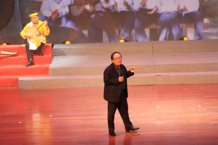 Nhà thơ Trần Đăng Khoa trình bày bài thơ tại đêm thơ