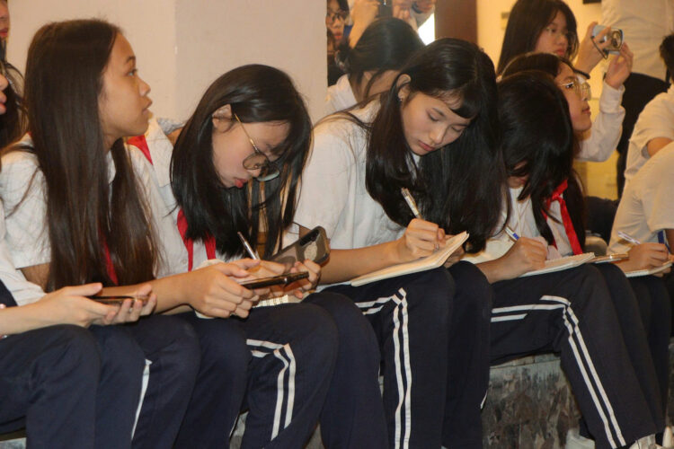 Điểm nhấn của chương trình là buổi trò chuyện, giao lưu cùng TS – nhà thơ Đỗ Anh Vũ. Khách mời đã chia sẻ về phương pháp sáng tác của các nhà văn đương đại, giúp học sinh hiểu thêm về quá trình hình thành một tác phẩm thơ văn. Không khí trao đổi sôi nổi với nhiều câu hỏi, chia sẻ, cảm nhận đã tạo sự kết nối sinh động giữa kiến thức sách vở và sống văn học.