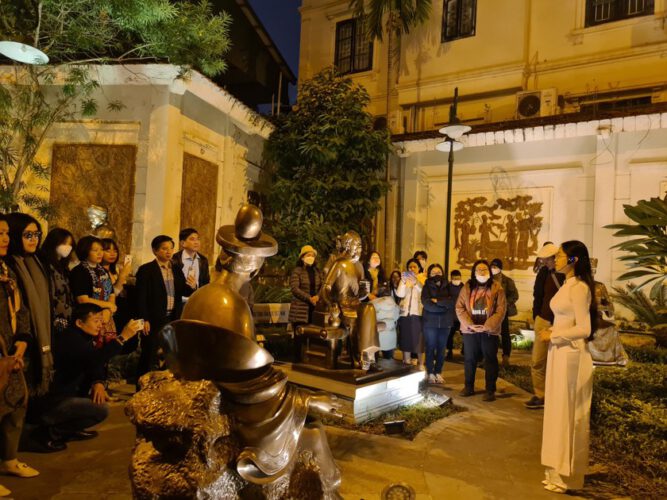 Cũng trong tour thăm quan, du khách sẽ đến khu vườn tượng 20 danh nhân văn học trong khi chờ đến giờ khởi hành; Gánh Tâm Gánh Tài vào Cửa “Ngôi đền Văn Chương Việt Nam”, thăm Không gian Văn học Việt Nam thời kỳ Cổ – Trung đại, chiêm ngưỡng Bản tuyên ngôn độc lập đầu tiên “Nam Quốc Sơn Hà”, “Bản tuyên ngôn độc lập thứ hai “ Bình Ngô Đại Cáo”, “Hòn đá thiêng”, Không gian đại thi hào Nguyễn Du và truyện Kiều; không gian Văn học hiện thực phê phán, thăm không gian trưng bày về tác phẩm của Hồ Chủ tịch… trong hành trình tham quan, du khách cũng sẽ được nghe những câu chuyện “thâm cung bí sử” và những câu chuyện lay động lòng người về các nhà văn, nhà thơ câu chuyện hình thành tác phẩm văn học.