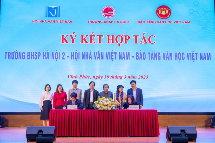 Chiều ngày 30.3.2023, tại Hội trường A2 trường Đại học Sư Phạm Hà Nội 2 diễn ra lễ ký kết hợp tác giữa Hội Nhà văn Việt Nam, Bảo tàng Văn học Việt Nam và Đại học Sư phạm Hà Nội 2.